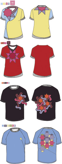 ![]() My tees are based on Islamic geometric shapes with set in panels which make up the geometric shapes. Using non-conventional colours, and using the high quality jersey. All four pieces are hand made. The Women's styles have extra 3D panel details round most of the geometric shapes, and the men's tees are more flat and plan, with the graphic off-centre. |